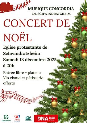 La société de musique CONCORDIA vous invite à son traditionnel concert de Noël à l'église…